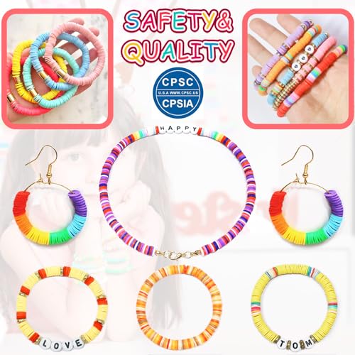 PREMIUM QUALITY & SAFE – The 6mm diameter, 1mm thickness clay heishi beads with a 2mm hole are handmade with soft clay, the product has obtained Children’s Product Certificate, ensuring safety, eco-friendliness, waterproofing, and skin-friendly wear. Ideal for ages 6 and up.