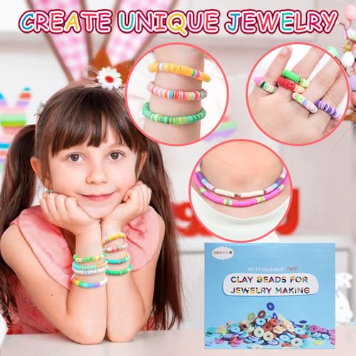 Redtwo 7400 Pcs Clay Beads Bracelet Making Kit for Biginner, 48 Colors for Friendship Jewelry Making Kit, Flat Polymer Heishi Beads with Charms Gifts for Teen Girls Crafts for Girls Ages 8-12